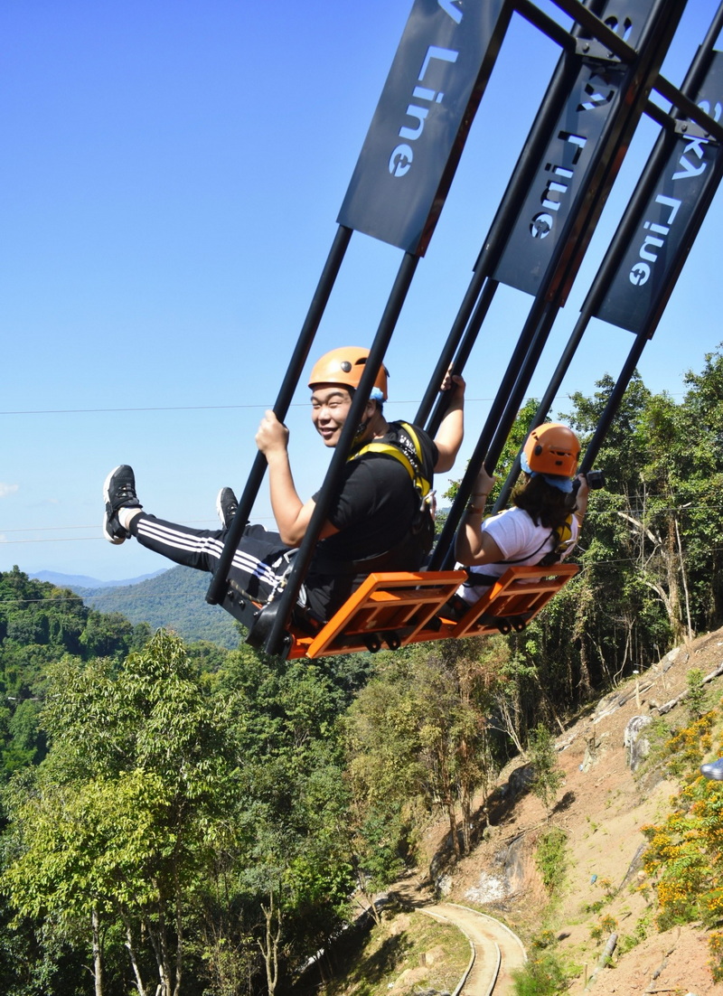 Get ready for an exhilarating ride on the world’s longest jungle zip-line rollercoaster at Jungle Flight. This adventure is more than a simple zip line; it’s a dynamic journey through the canopy of the Thai rainforest. Over a distance of 1,100 meters and within just four minutes, you’ll experience the forest from an entirely new angle. The ride is filled with twists, turns, and heart-stopping drops, including a stunning 360-degree turn. As you zip through the trees at breathtaking speeds, you'll be captivated by the unique blend of adrenaline and natural beauty.